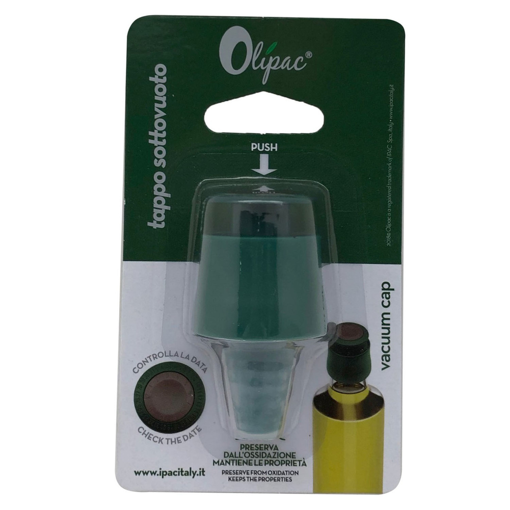 Korek próżniowy Olipac usuwa powietrze oraz spowalnia naturalny proces utleniania oliwy, utrzymując jej świeżość przez około trzy tygodnie. Korek posiada regulowany kalendarz do zaznaczenia daty jego założenia na butelkę. Sposób użycia jest bardzo prosty, wystarczy założyć korek na butelkę i wielokrotnie naciskać przycisk do momentu wypompowania powietrza. Aby otworzyć butelkę, wystarczy po prostu zdjąć korek. Uwaga! Korek najlepiej pasuje do butelek o średnicy wewnętrznej szyjki około 2,4cm oraz grubości ścianki szyjki około 4,5mm. Materiał: tworzywo sztuczne, silikon. Wymiary brutto: 13,5x8x4cm. Wymiary netto: 6,2x3,6cm. Waga brutto: 0,028kg. Waga netto: 0,017kg.