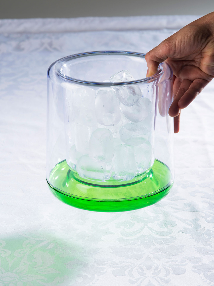 Niebieski pojemnik termiczny na lód z kolekcji Happy Drink. Organizujesz przyjęcie i potrzebujesz utrzymać temperaturę napojów i lodu? Produkty kolekcji Happy Drink Ci w tym pomogą. Każdy z nich zaprojektowany w taki sposób by cieszyć oko, przyciągać uwagę i spełniać swoje zadanie. Dzięki nim wprowadzisz na imprezowy blat świeżość i oryginalność. Produkt wykonany we Włoszech. Nie zawiera melaminy oraz bisfenoli. Materiał: akryl.Bezpieczeństwo - rodzaj ostrzeżenia