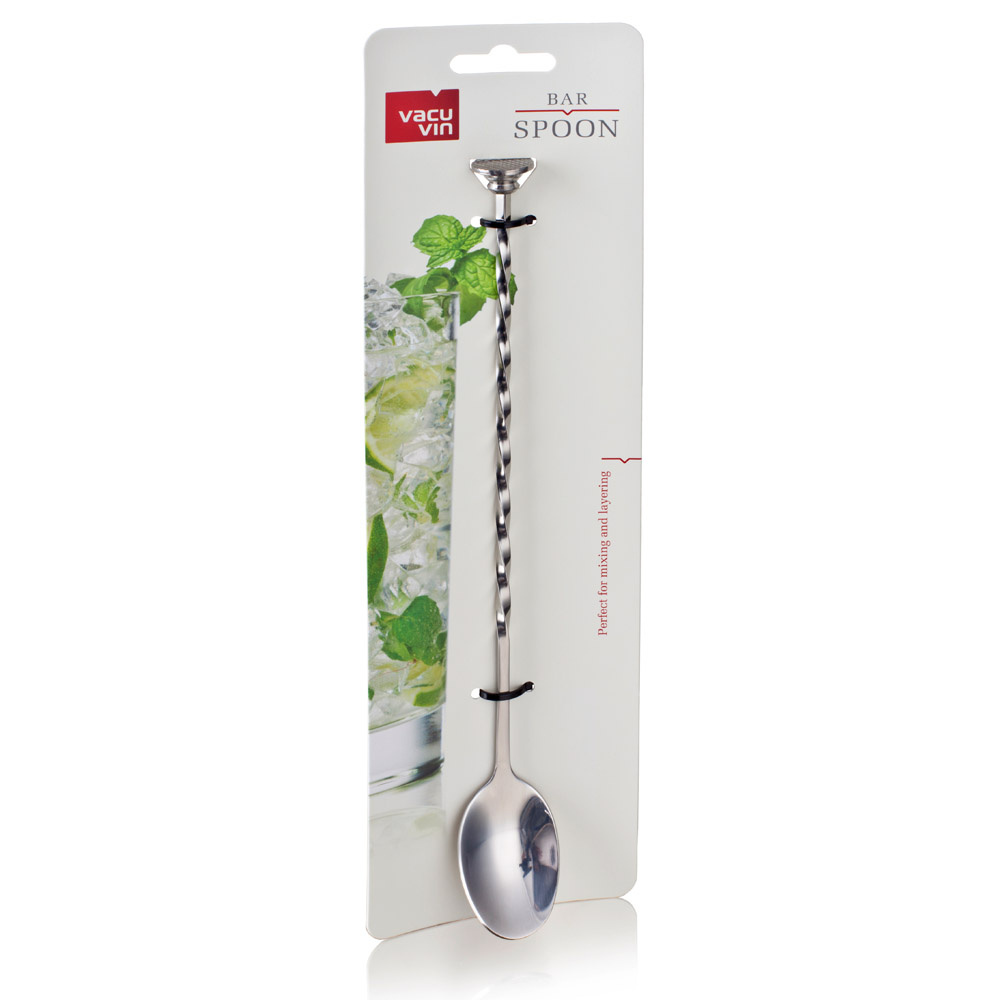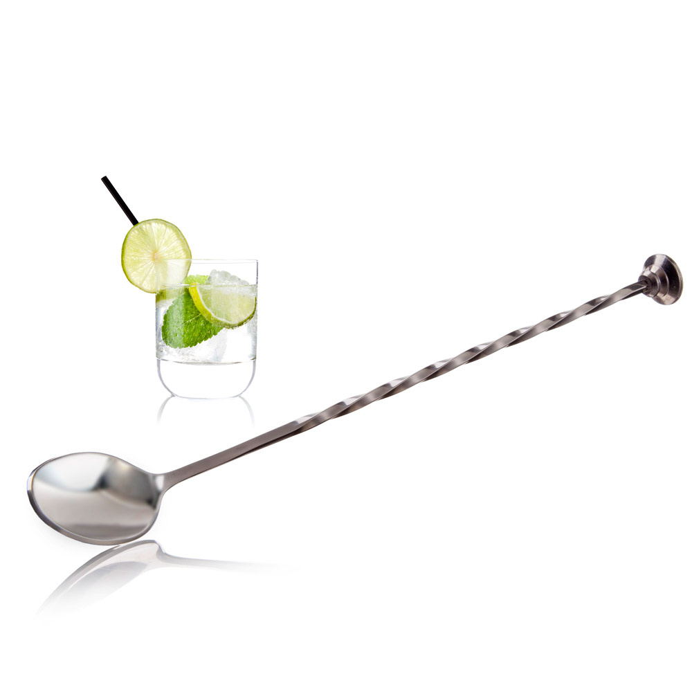 Czas dołączyć do wyposażenia swego domowego baru stylową łyżkę barmańską. To piękny przedmiot, który zachwyci każdego estetę. Ale łyżka służy nie tylko by zachwycać. Ma również funkcje użytkowe - służy do mieszania „long” drinków oraz składników koktajli w szklanicy barmańskiej. Spłaszczona końcówka może służyć do rozgniatania składników drinków, np. limonki lub liści ziół. Łyżka została wykonana z wysokiej jakości stali nierdzewnej. Można myć w zmywarce. Materiał: stal nierdzewna Przybliżone wymiary: całkowita długość 28cm, w tym samej łyżki 5cm, szerokość łyżki 3,5cm, średnica stopki-zgniatacza 2cm Przybliżone wymiary brutto: wysokość 33,5cm, długość 9,5cm, szerokość 3cm Przybliżona waga brutto: 0,075kg Opakowanie: tekturowa zawieszka