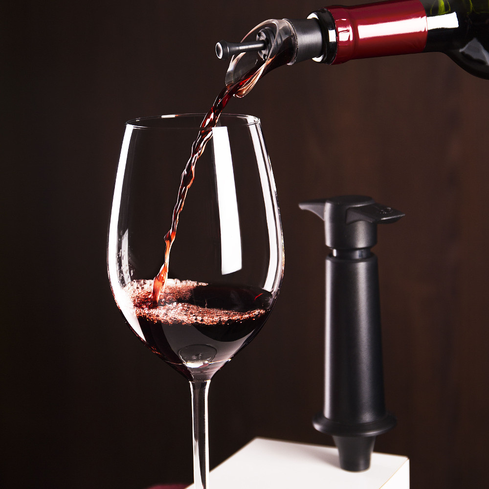 Pompka do wina z korkiem i nalewakiem 3 w 1 - nalewanie, hermetyczne zamknięcie i próżniowe przechowywanie wina. Koniec z wyjmowaniem korków, nakładaniem nalewaków, pierścieni przeciw kapaniu itp. Połączenie korka próżniowego do butelek z nalewakiem to unikalne, praktyczne i eleganckie rozwiązanie w świecie akcesoriów do wina. Pompka próżniowa do korka z nalewakiem działa na tej samej zasadzie jak pozostałe pompki próżniowe Vacu Vin, pozwala usunąć powietrze z otwartej butelki wina, co opóźnia jego proces utleniania a wino zachowa swój smak oraz aromat nawet przez kilka kolejnych dni. Osiągnięcie próżni jest sygnalizowane charakterystycznym „kliknięciem” przy wypompowaniu powietrza z butelki. Kiedy je usłyszysz należy zaprzestać pompowania. Kliknięcie oznacza, że całe powietrze zostało wypompowane. Korek próżniowy z nalewakiem do wina pozwala za każdym razem perfekcyjnie podać wino bez jego rozlewania. Został on tak zaprojektowany, aby zapobiec kapaniu przy serwowaniu a nadmiar wina powrócił z powrotem do butelki. Wysoki połysk, przezroczysty materiał, nadaje mu elegancki wygląd. Pociągnięcie przycisku o długim trzonie w górę otwiera korek, dzięki czemu jest on gotowy do serwowania. Gumowa uszczelka zapewnia idealne dopasowanie do szyjki butelki. Pasuje do większości butelek z korkiem lub nakrętką. Delikatne wciśnięcie przycisku powoduje szczelne zamknięcie butelki, jeśli teraz użyjesz pompki do wina i usuniesz powietrze z butelki to będziesz mógł cieszyć się aromatem twojego ulubionego wina znacznie dłużej. To sprytne a zarazem eleganckie urządzenie do serwowania i próżniowego przechowywania wina, które pozwoli ci zachować pełnię smaku na dłużej.Bezpieczeństwo - rodzaj ostrzeżenia