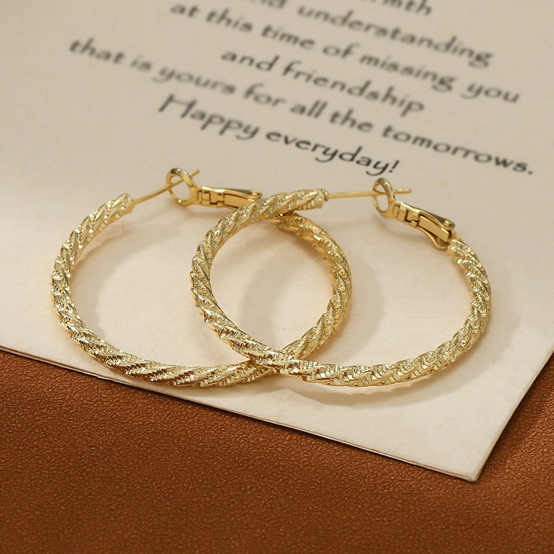 Kolczyki ze stali szlachetnej platerowane 14-karatowym złotemEleganckie i stylowe kolczykiWymiar kolczyków: 4cm x 4cmWymiar kartonika:5,5 cm x 6 cmWaga:8g netto / 11g bruttoKolor: jasne złotoSTAL CHIRURGICZNA jest odporna na warunki atmosferyczne, nie ulega korozji, nie rdzewieje, nie śniedzieje.