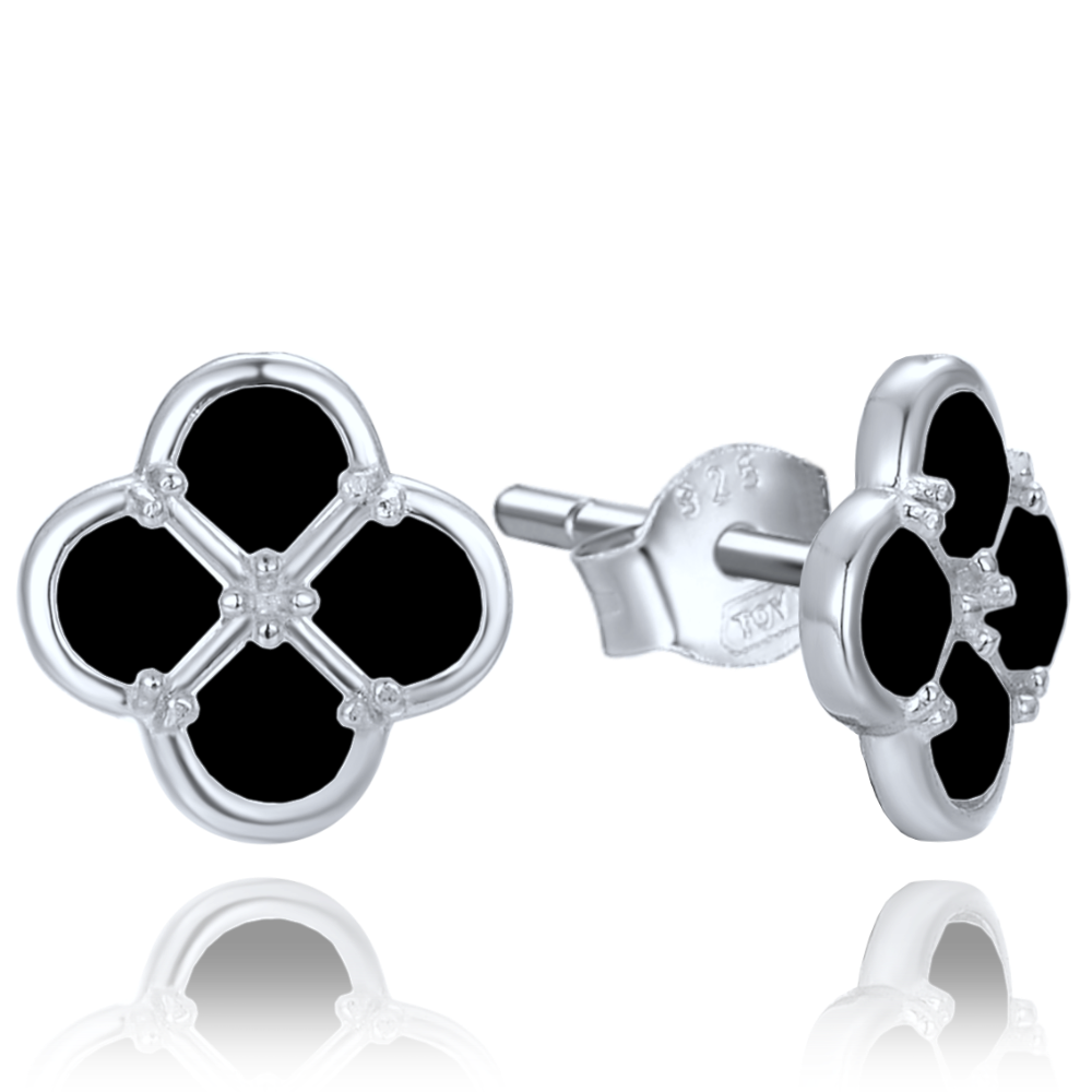 MINET Srebrne kolczyki koniczyna z czarną masą perłową