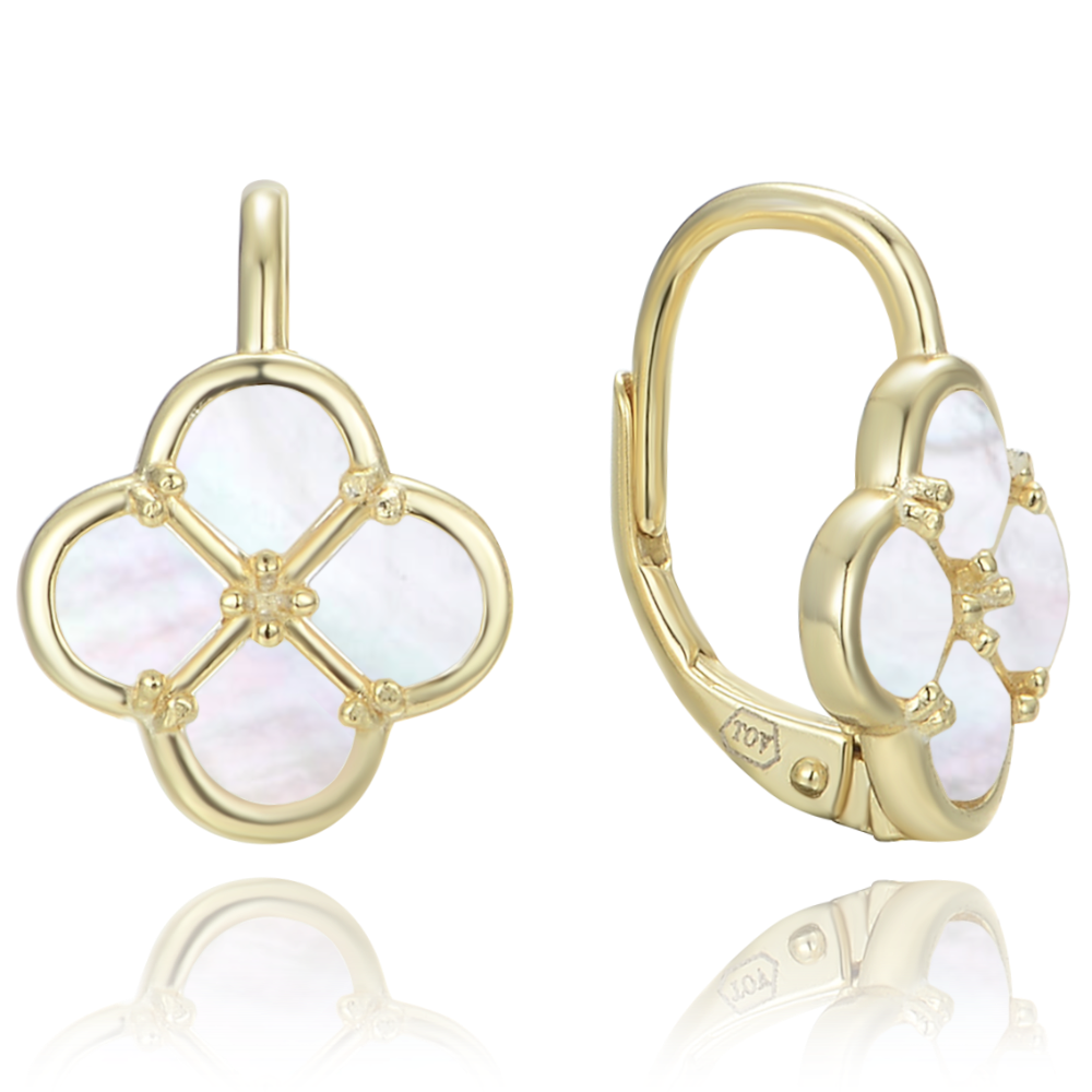 MINET Pozłacane srebrne kolczyki koniczyna z białą masą perłową