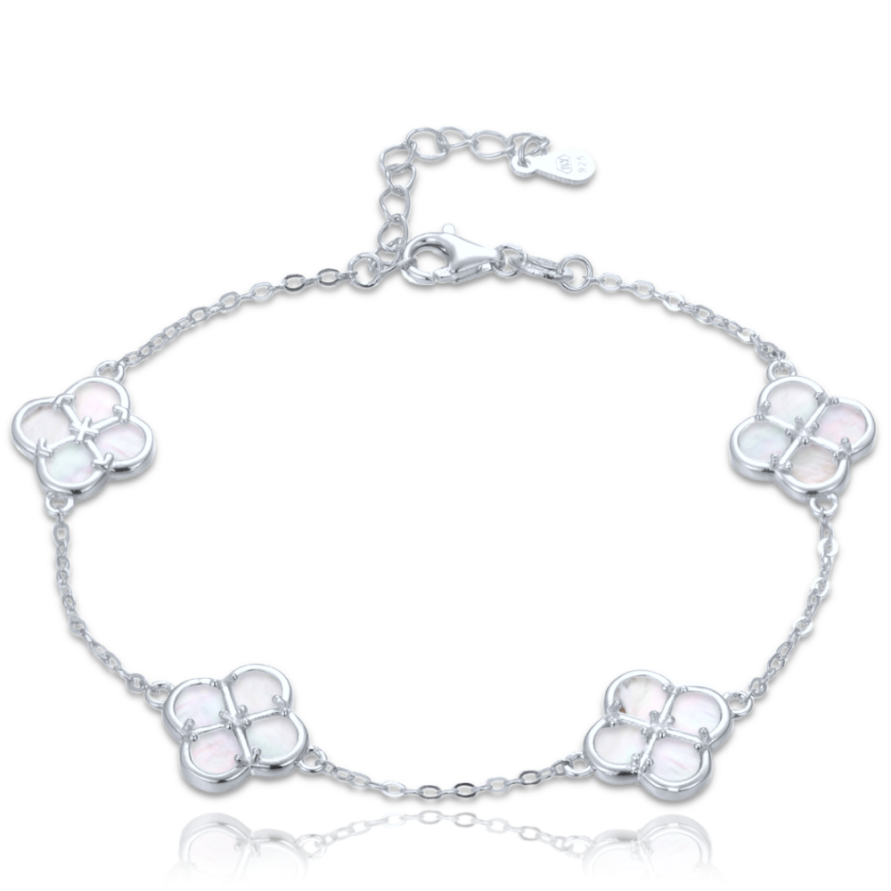 MINET Srebrna bransoletka koniczyna z białą masą perłową