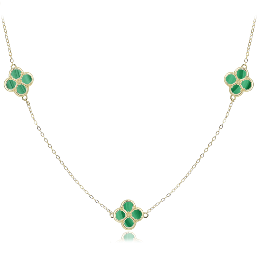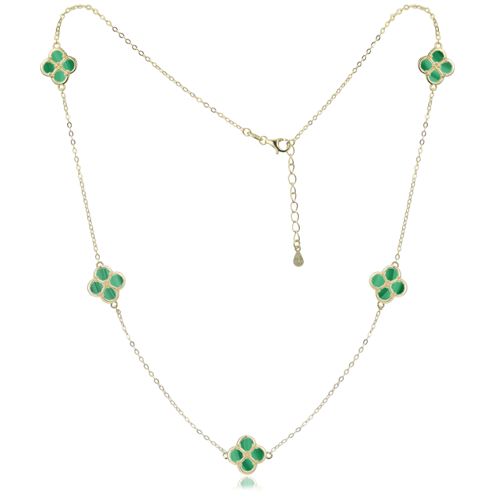 MINET Pozłacany srebrny naszyjnik koniczynkami z malachitem