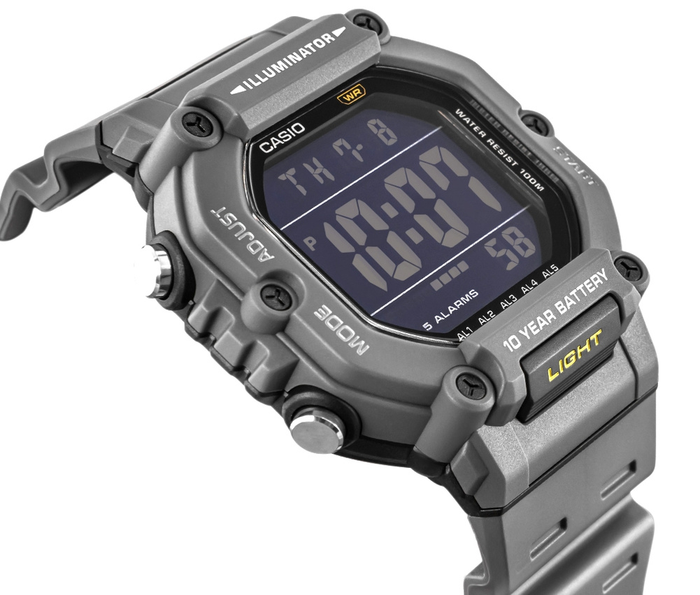 Model CASIO o dużym, łatwym do odczytania i obsługi ekranie LCD, z solidną kopertą o geometrycznym designie. Zegarek daje możliwość śledzenia dwóch stref czasowych jednocześnie – idealne dla osób w podróży lub pracujących międzynarodowo. Dzięki przyciskowi umieszczonemu z przodu koperty, dostęp do podświetlenia LED jest wyjątkowo prosty i intuicyjny. Wodoszczelność do 100 metrów oraz 10-letnia żywotność baterii sprawiają, że możesz zapomnieć o jakiejkolwiek konserwacji na długi czas. Wyposażony w bogate funkcje: stoper z dokładnością 1/100 sekundy, timer z funkcją odliczania, 5 alarmów wielofunkcyjnych (1 z funkcją drzemki), podświetlenie LED w kolorze Amber oraz w pełni automatyczny kalendarz (do roku 2099). Model idealny, zarówno podczas uprawiania sportu i rekreacji, jak i w pracy czy codziennych obowiązkach.