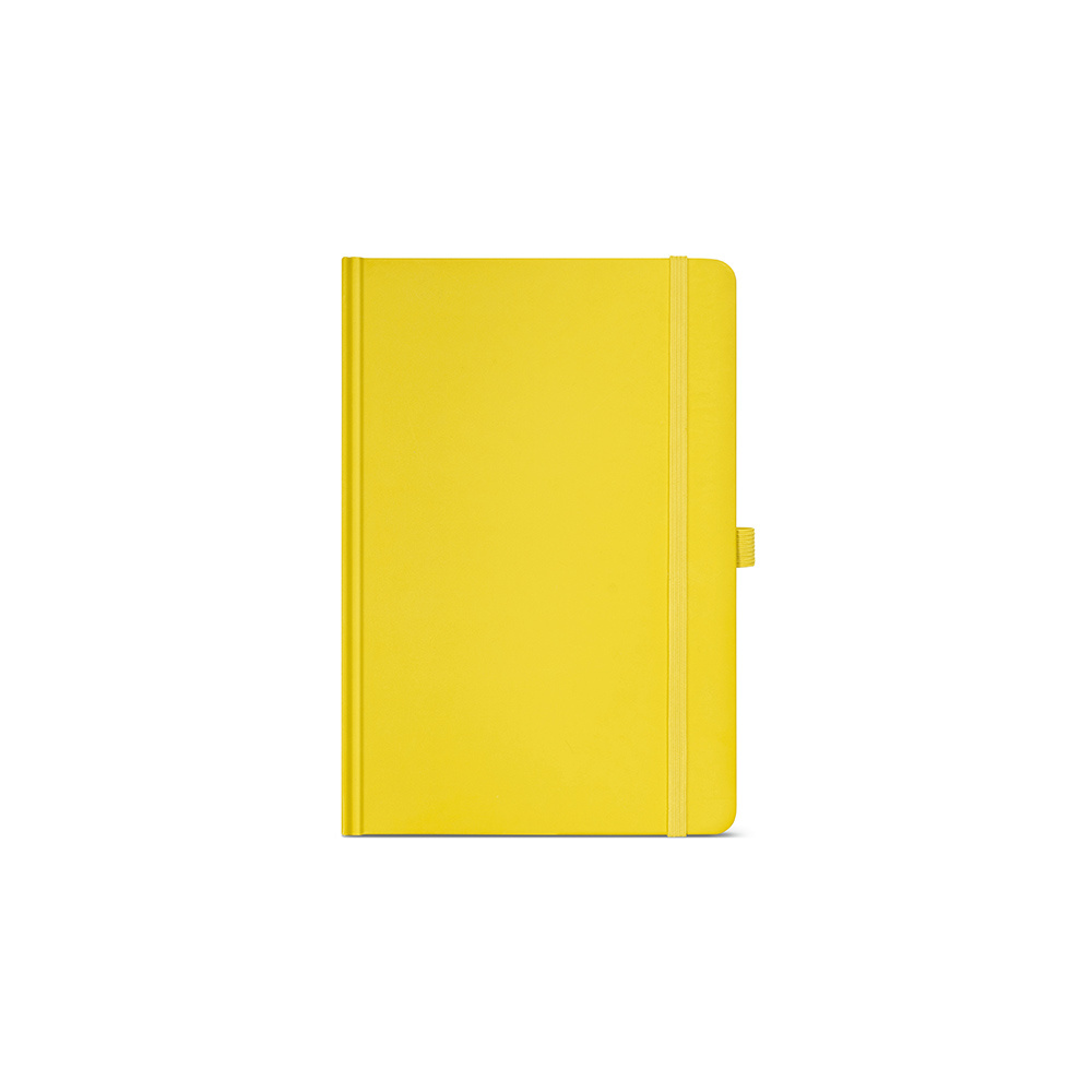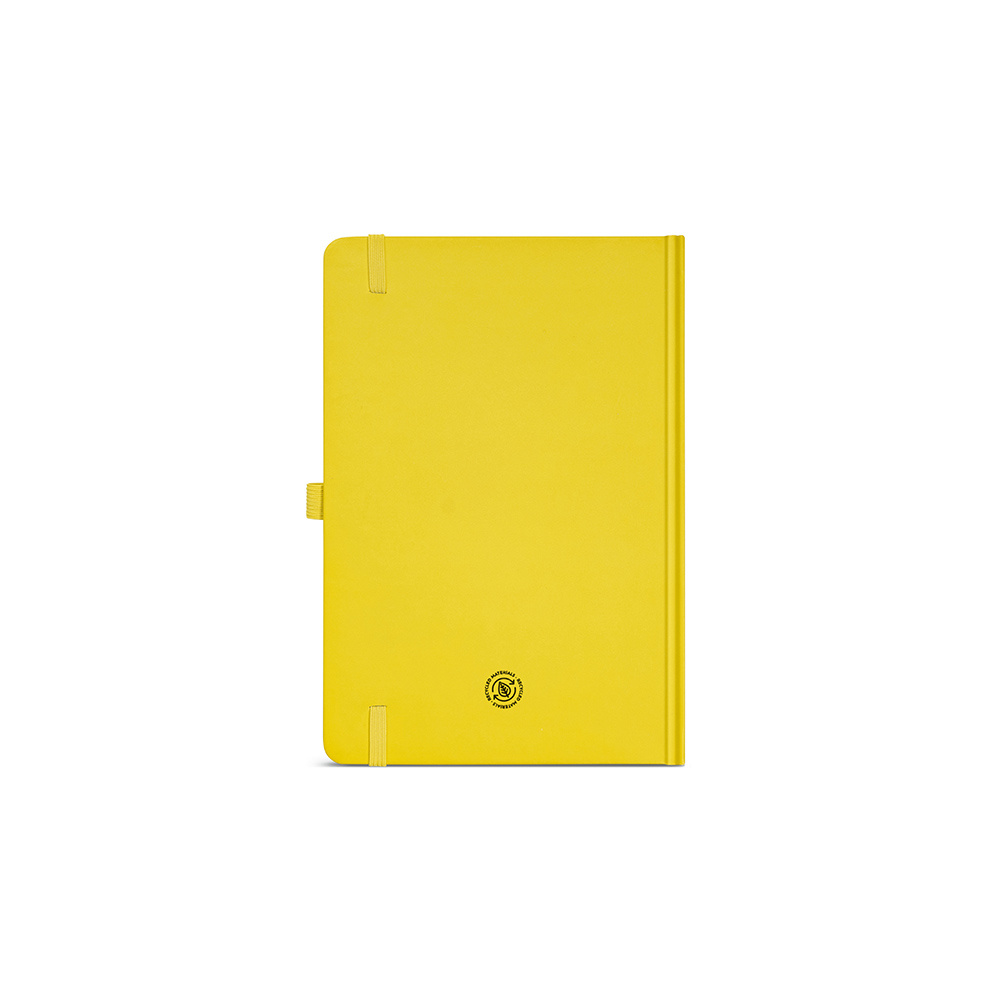 Nasz notatnik A5 ma okładkę z papieru pochodzącego z recyklingu i 196 stron w linie z kości słoniowej 70 gsm. Posiada wytrzymałą twardą okładkę, zaokrąglone rogi i wstążkową zakładkę. Posiada również elastyczne zamknięcie, rozszerzalną kieszeń i uchwyt na długopis.