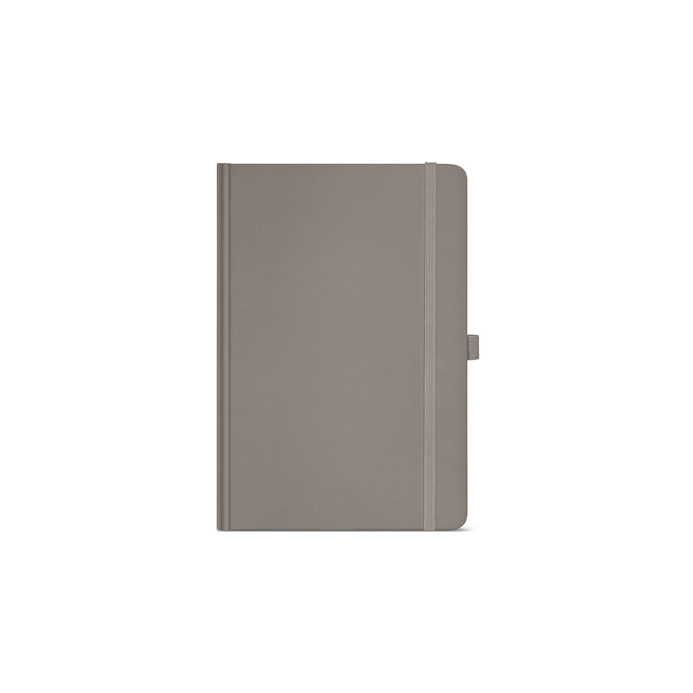 Nasz notatnik A5 ma okładkę z papieru pochodzącego z recyklingu i 196 stron w linie z kości słoniowej 70 gsm. Posiada wytrzymałą twardą okładkę, zaokrąglone rogi i wstążkową zakładkę. Posiada również elastyczne zamknięcie, rozszerzalną kieszeń i uchwyt na długopis.