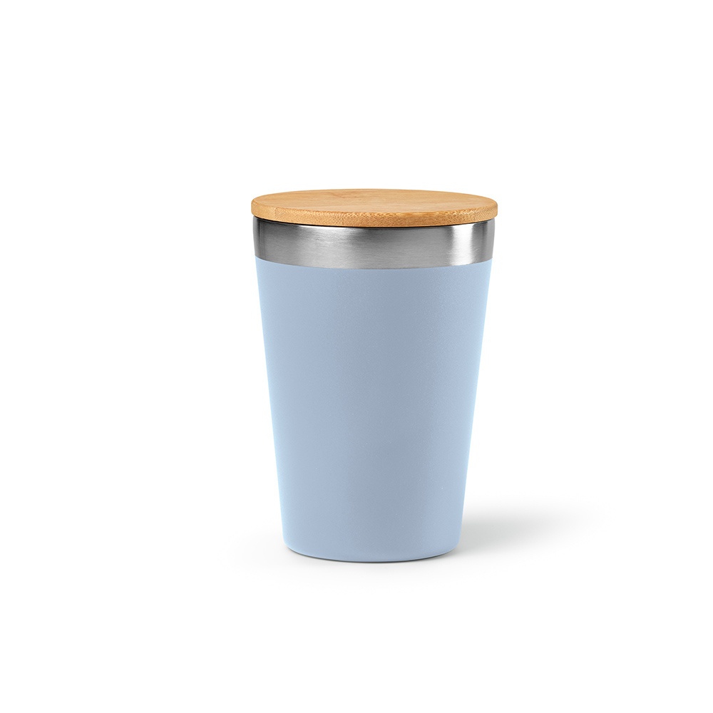 Wzbogać swoje łyki dzięki naszemu kubkowi podróżnemu o pojemności 390 ml (320 ml netto) ze stali nierdzewnej pochodzącej z recyklingu, który będzie Twoim ulubieńcem. Ma podwójne ścianki izolacyjne zapewniające idealną temperaturę napoju. Bambusowa pokrywka dodaje naturalnego akcentu. Pij w sposób przyjazny środowisku.