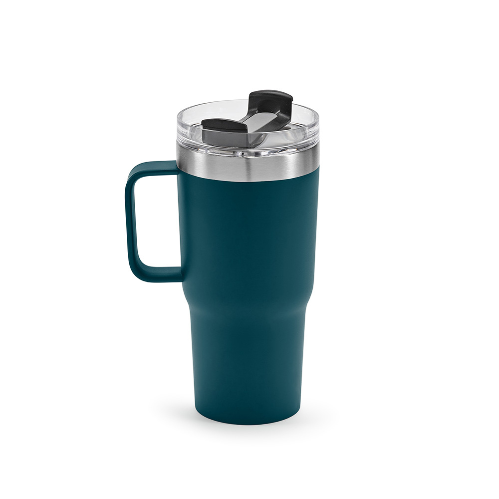 Orzeźwiające łyki z naszego kubka o pojemności 580 ml (490 ml netto). Recyklingowana stal nierdzewna i podwójne ścianki izolacyjne utrzymują napoje w idealnym stanie. Obrotowa pokrywka dopełnia całości, a kubek można myć w zmywarce. Od pracy do podróży, popijaj w sposób zrównoważony i stylowy.
