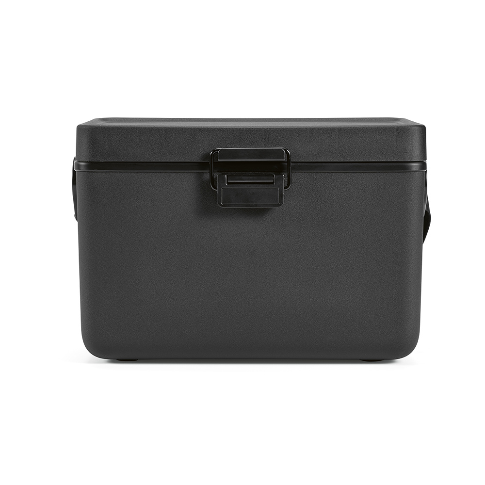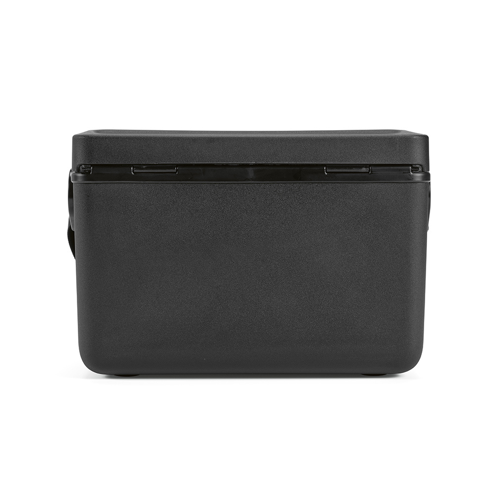 Plastikowa lodówka 12L z recyklingu: Trwała, przyjazna dla środowiska, z poręcznym paskiem transportowym. Dostarczana z tabliczką (14 x 7 cm), na której można umieścić logo. Idealny do chłodzenia napojów w podróży, podczas biwakowania lub na plaży.