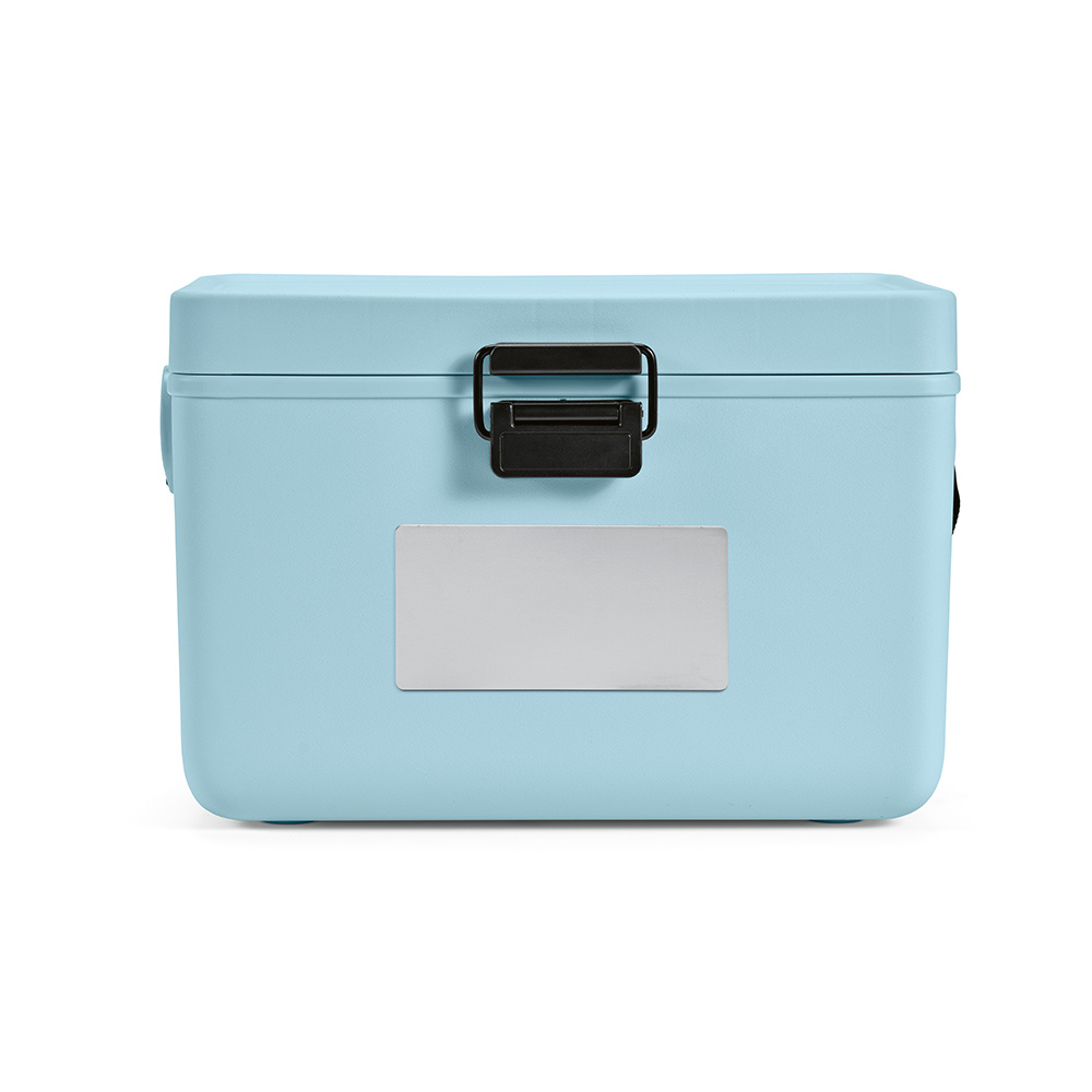 Plastikowa lodówka 12L z recyklingu: Trwała, przyjazna dla środowiska, z poręcznym paskiem transportowym. Dostarczana z tabliczką (14 x 7 cm), na której można umieścić logo. Idealny do chłodzenia napojów w podróży, podczas biwakowania lub na plaży.