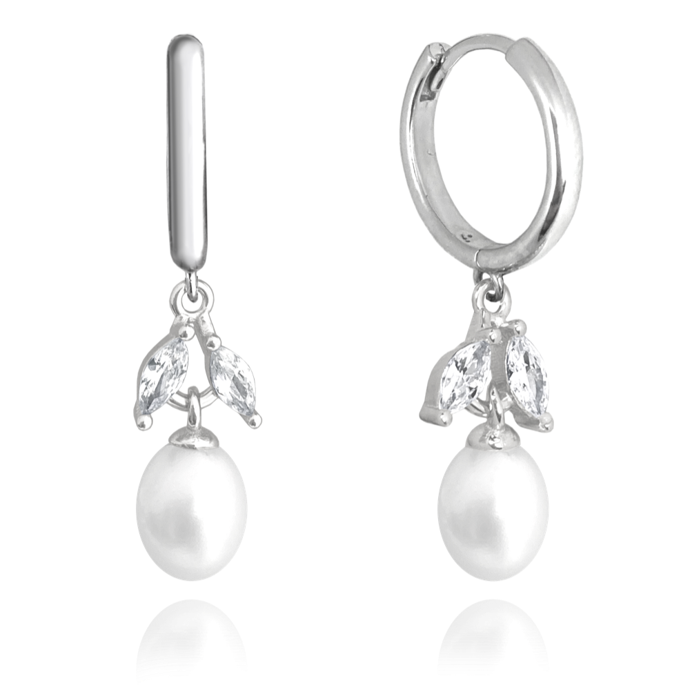 MINET Srebrne kolczyki z perłą i białą cyrkonią sześcienną