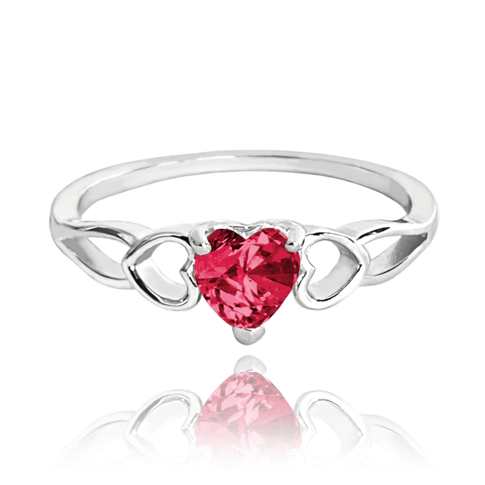 MINET Pierścień srebrny LOVE z sercem z czerwonej cyrkonii wielkość 17