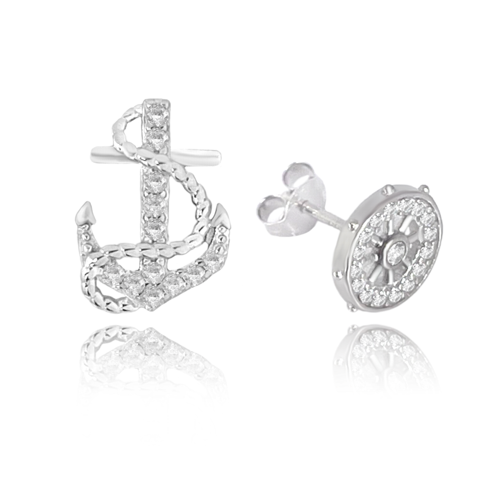 MINET Letnie srebrne kolczyki STER i KOTWICA z białymi cyrkoniami