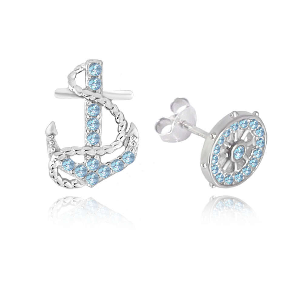 MINET Letnie srebrne kolczyki STER i KOTWICA z niebieskimi cyrkoniami