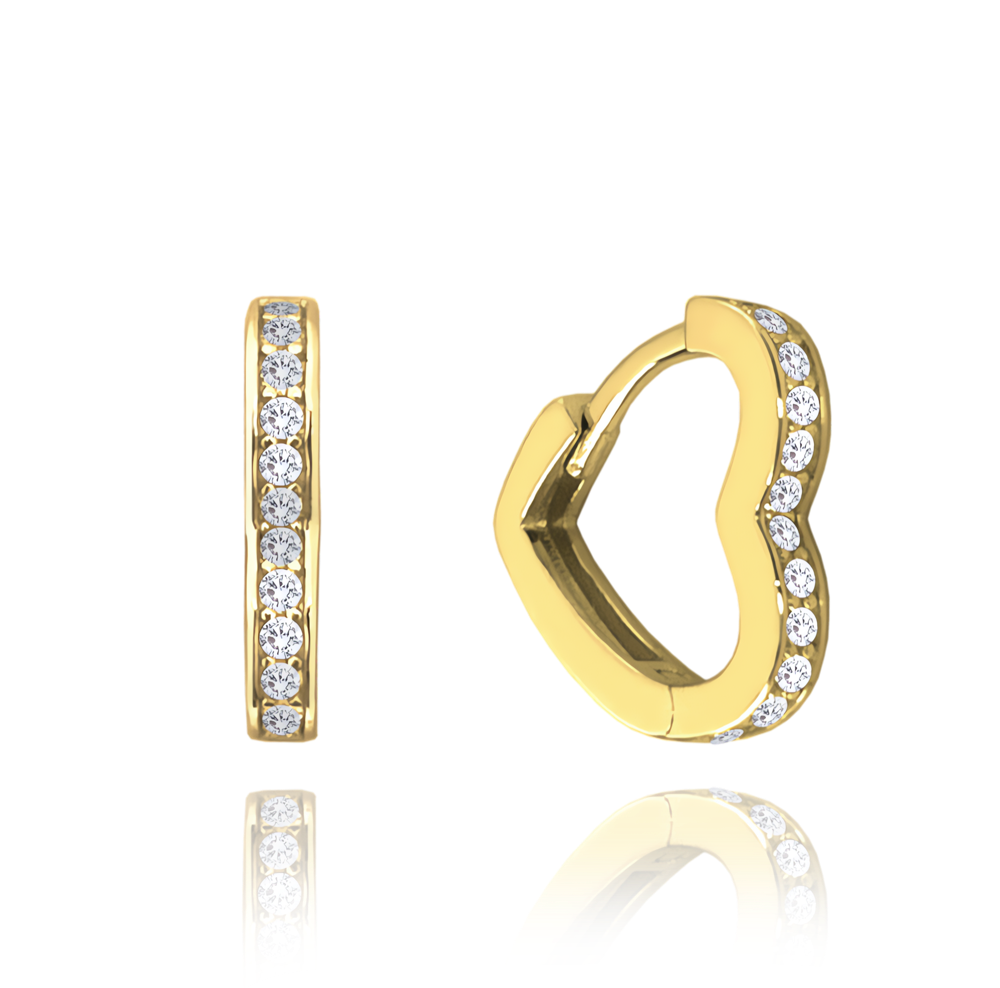 MINET Pozłacane kolczyki srebrne SERCE z białymi cyrkoniami