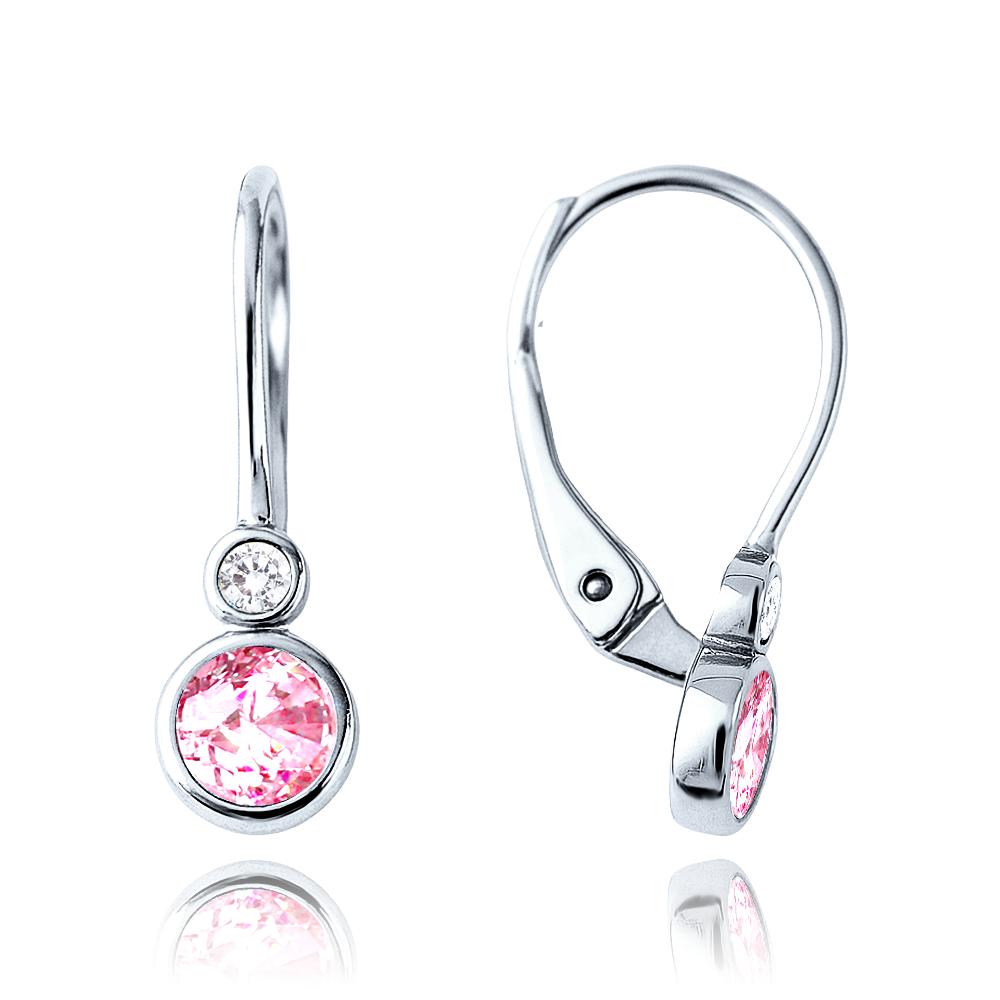 MINET Dziecięce kolczyki z białego złota z białymi i różowymi cyrkoniami Au 585/1000 1,70g