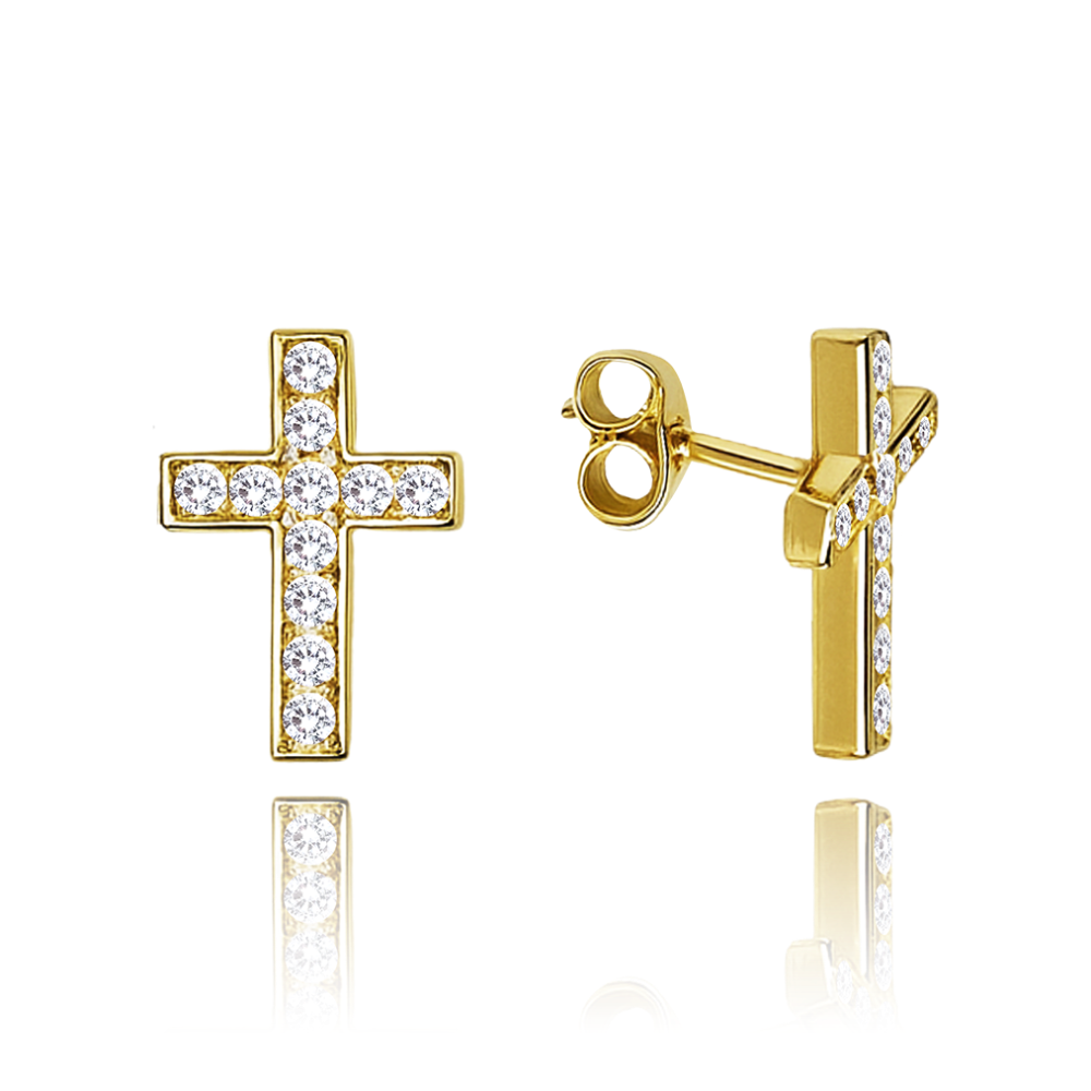 MINET Luksusowe złote kolczyki krzyże z białymi cyrkoniami Au 585/1000 1,10g
