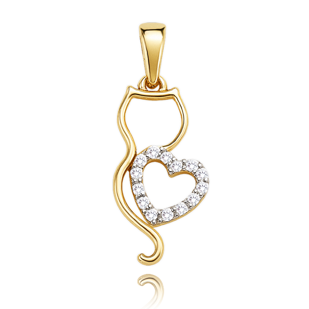 MINET Złoty wisiorek kot z sercem i białymi cyrkoniami Au 585/1000 0,70g