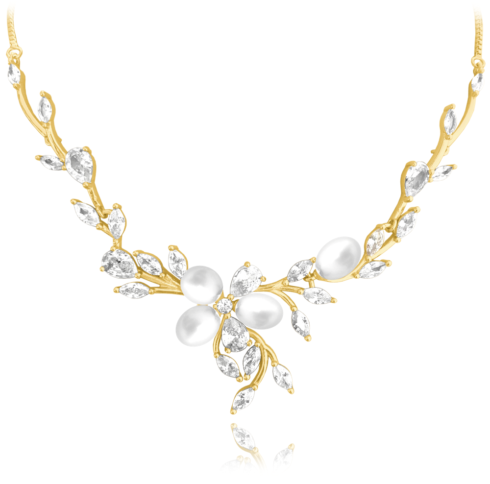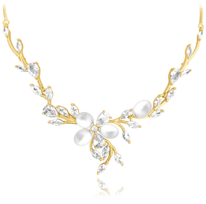 MINET Pozłacany naszyjnik srebrny naturalne perły z białymi cyrkoniami - Ag 925/1000 15,80g