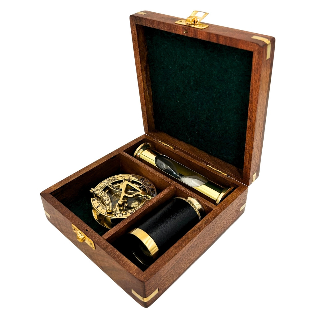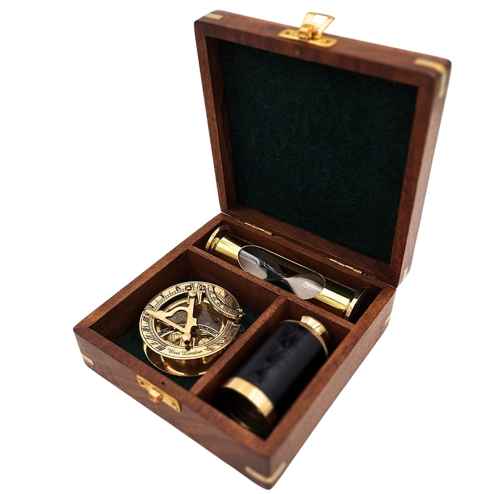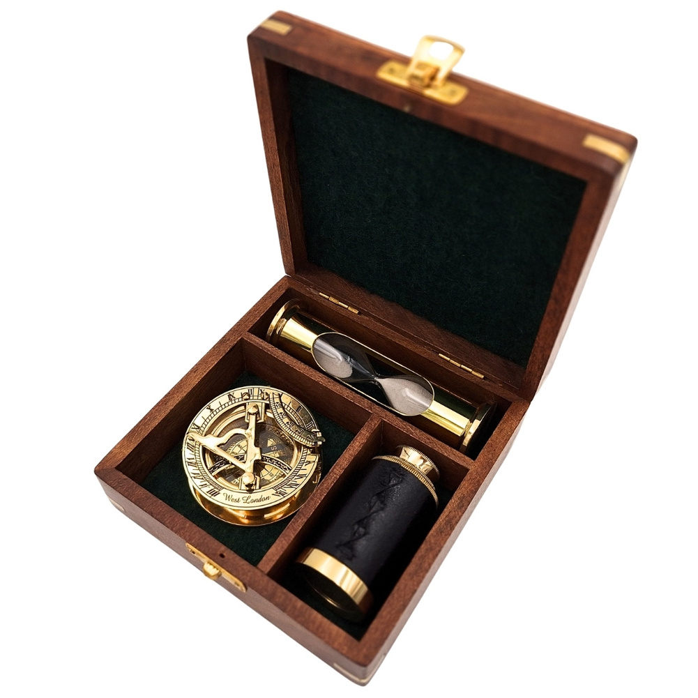 Zestaw Upominkowy Retro – Kompas, Luneta, Klepsydra w Pudełku Drewnianym - NC102365