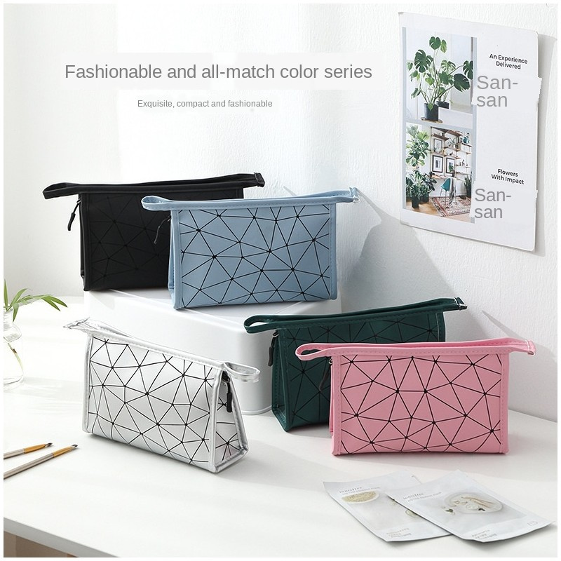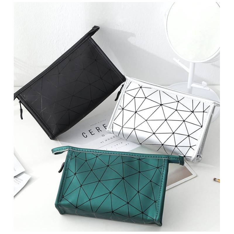 Piękna, damska rozkładana kosmetyczka z geometrycznymi wzorami.