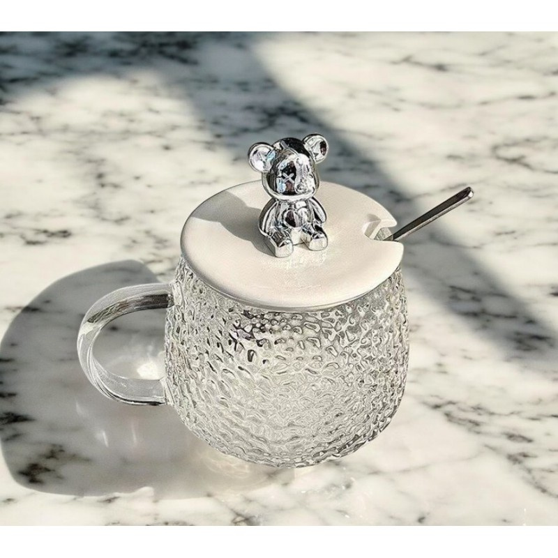Szklanka z uchem, pokrywką i łyżeczką w zestawie- 1szt.