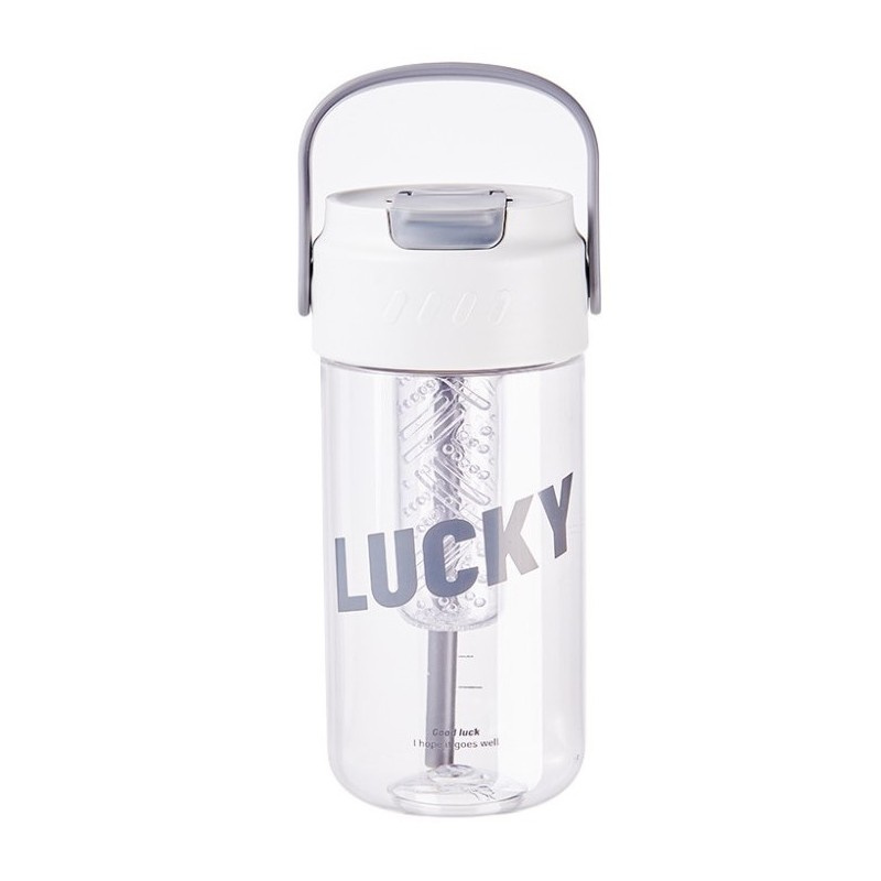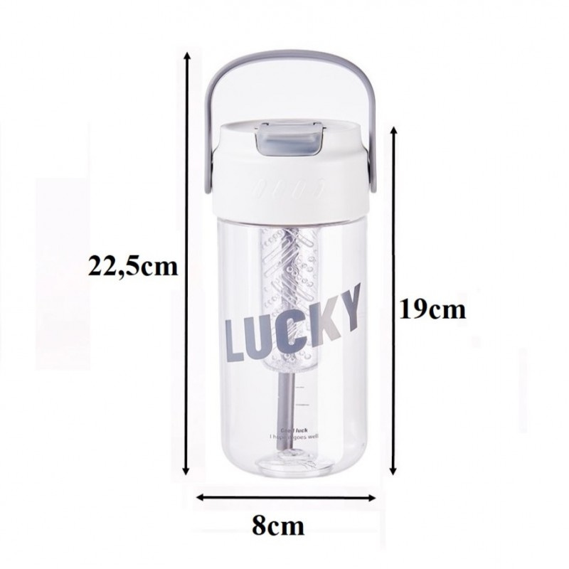 Specyfikacja: Pojemność: 800ml (średnica 8 cm, wysokość z zawleczką 19 cm), Materiał: PC + PP. Bidon posiada rączkę.
