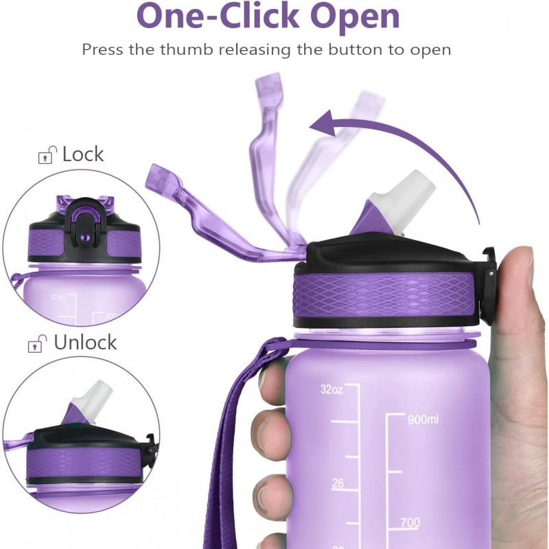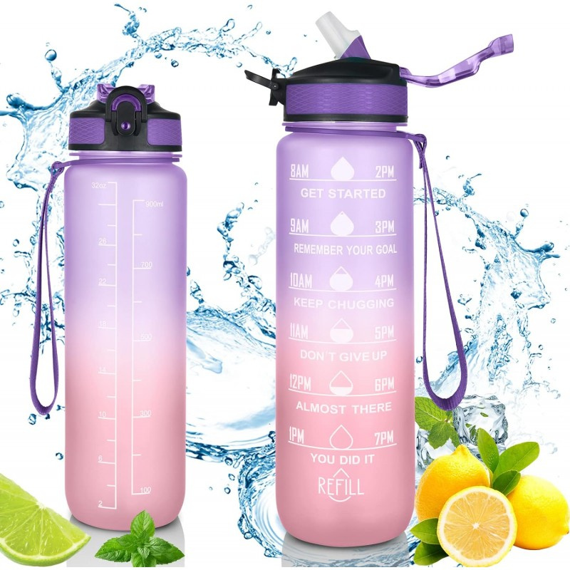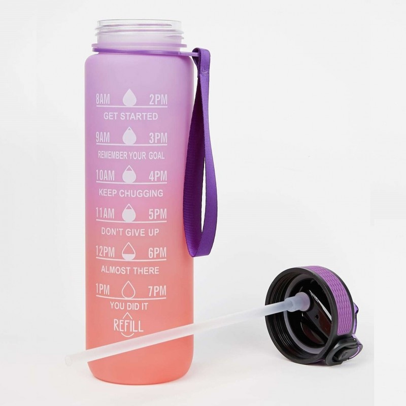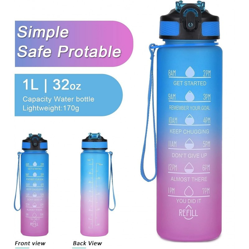 Specyfikacja: - Pojemność: 1000ml (średnica 7,5 cm, wysokość z zawleczką 28 cm), - Materiał: PC + PP + silikon. - Silikonowa dysza butelki na wodę jest