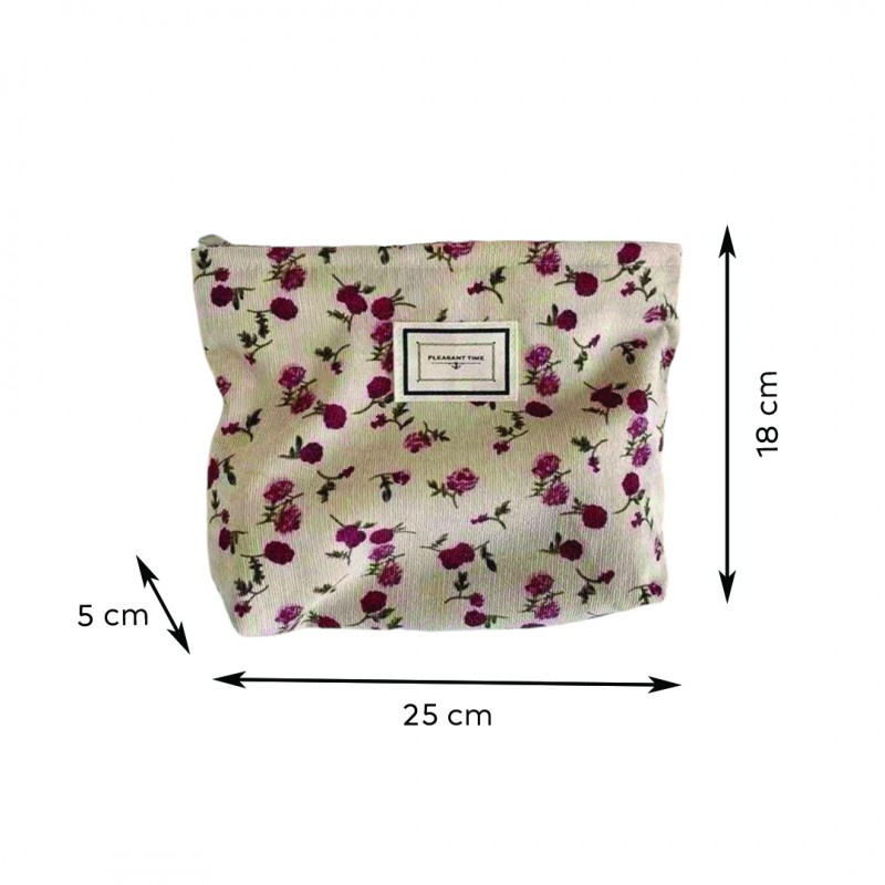 Wymiary: 25 cm x 5 cm x 18 cm Waga: 59g netto/ 61g brutto Materiał: 100% Poliester Modny dodatek na podróż - rozkładana kosmetyczka z piękną