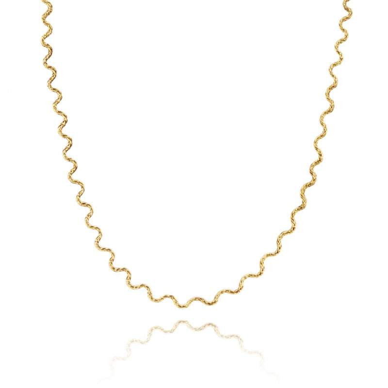 WYMIARY:- długość łańcuszka: 39cm- długość regulacji: 5cmWymiary kartonika:12cm x 10cmWaga:3g / 5g brutto Kolor: jasny odcień złota Biżuteria ze stali