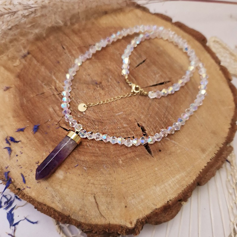 Modny naszyjnik ze stali szlachetnej platerowanej 14 - karatowym złotem z kryształem górskim Świetnie pasuje do eleganckich, jak również do codziennych