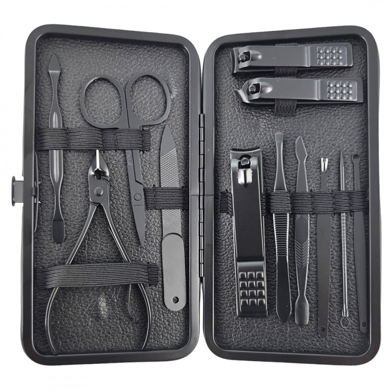 Zestaw akcesoriów do manicure 12w1 Zestaw akcesoriów zapakowany w małe etui ze skóry ekologicznej.