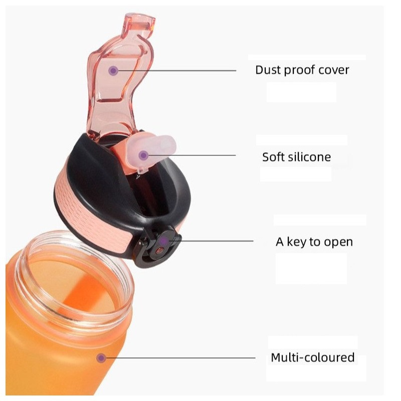Specyfikacja: - Pojemność: 1000ml (średnica 7,5 cm, wysokość z zawleczką 28 cm), - Materiał: PC + PP + silikon. - Silikonowa dysza butelki na wodę jest