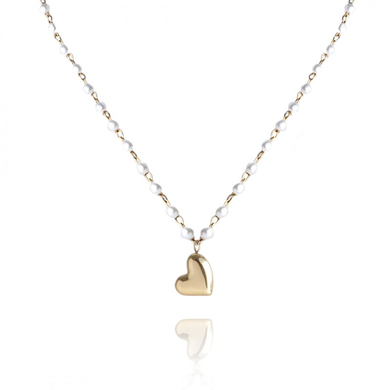 Modny naszyjnik ze stali szlachetnej platerowanej 14 - karatowym złotem z perełkami Świetnie pasuje do eleganckich, jak również do codziennych stylizacji.