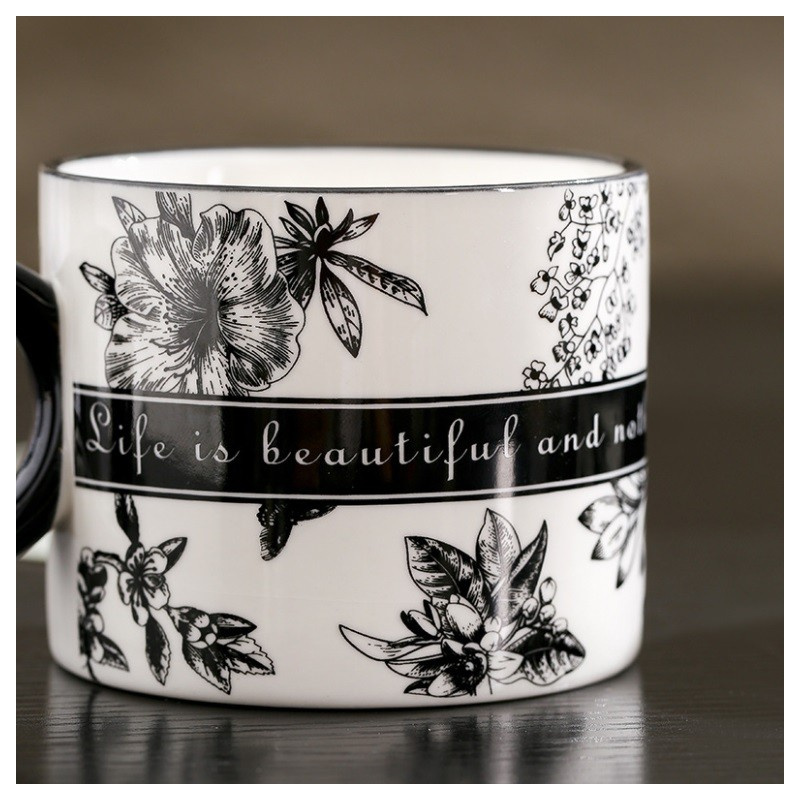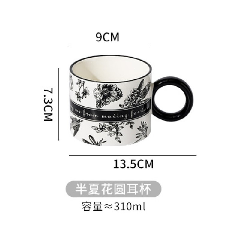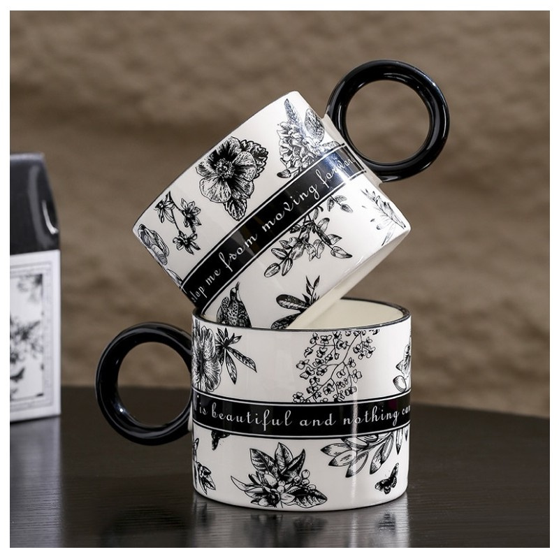 Specyfikacja:Materiał: ceramika Kolor: czarno - białe Pojemność: 310mlWymiary kubka: 9cm x 7,3cm x 13,5cmWymiary opakowania:12cm x 21cm x