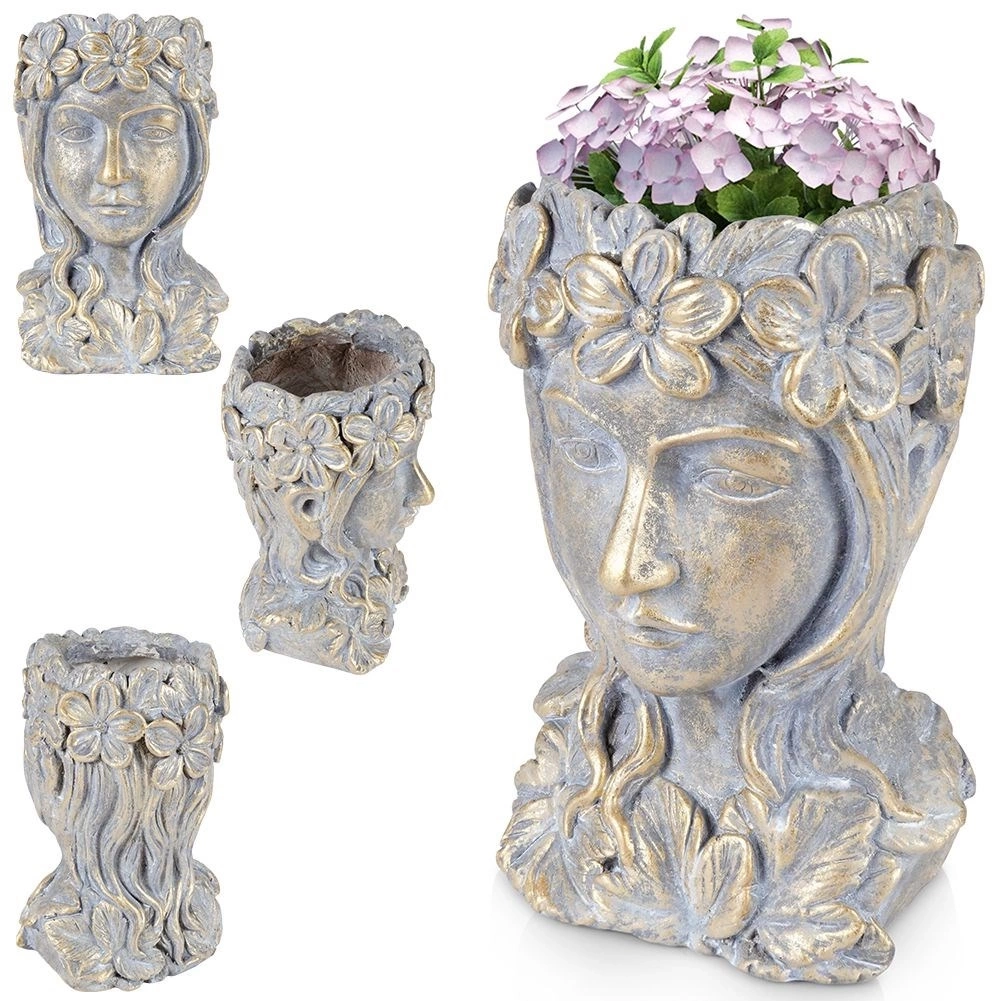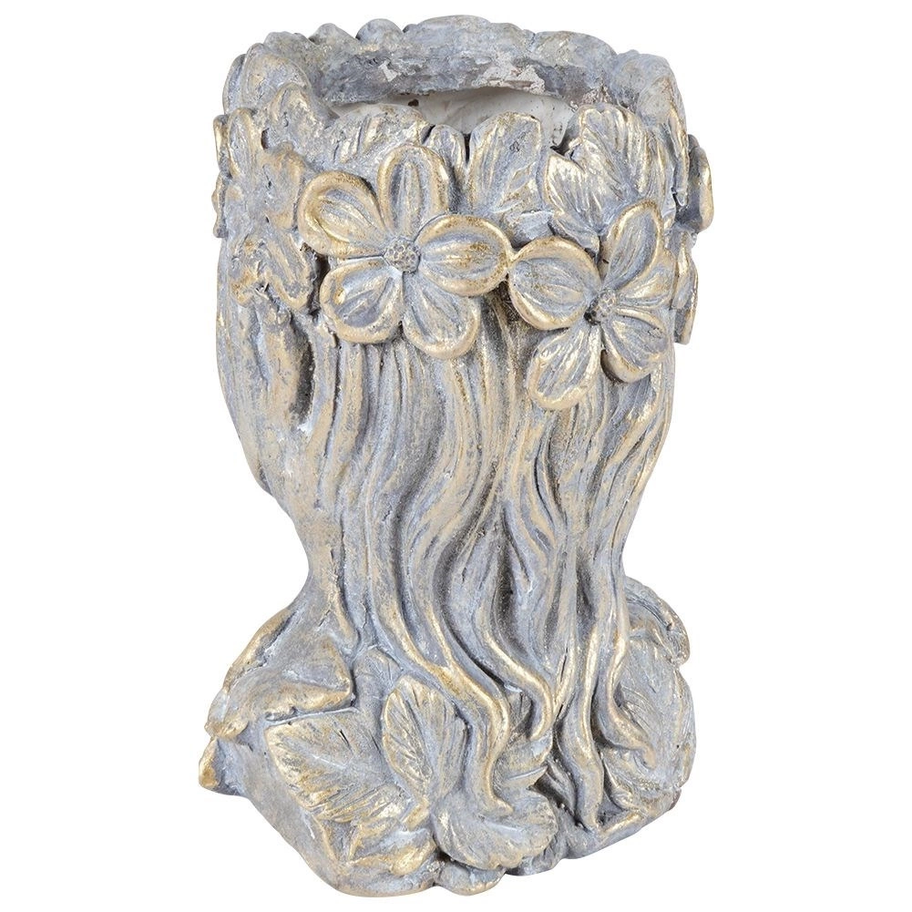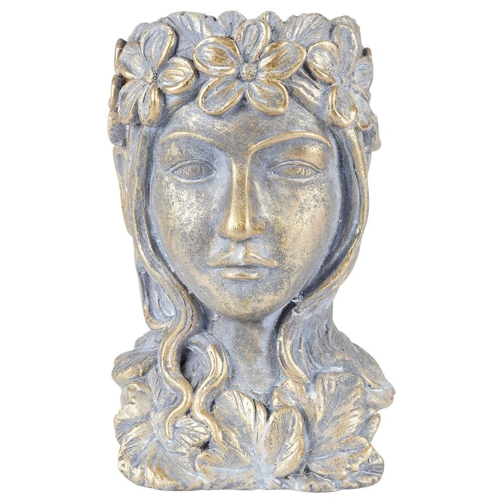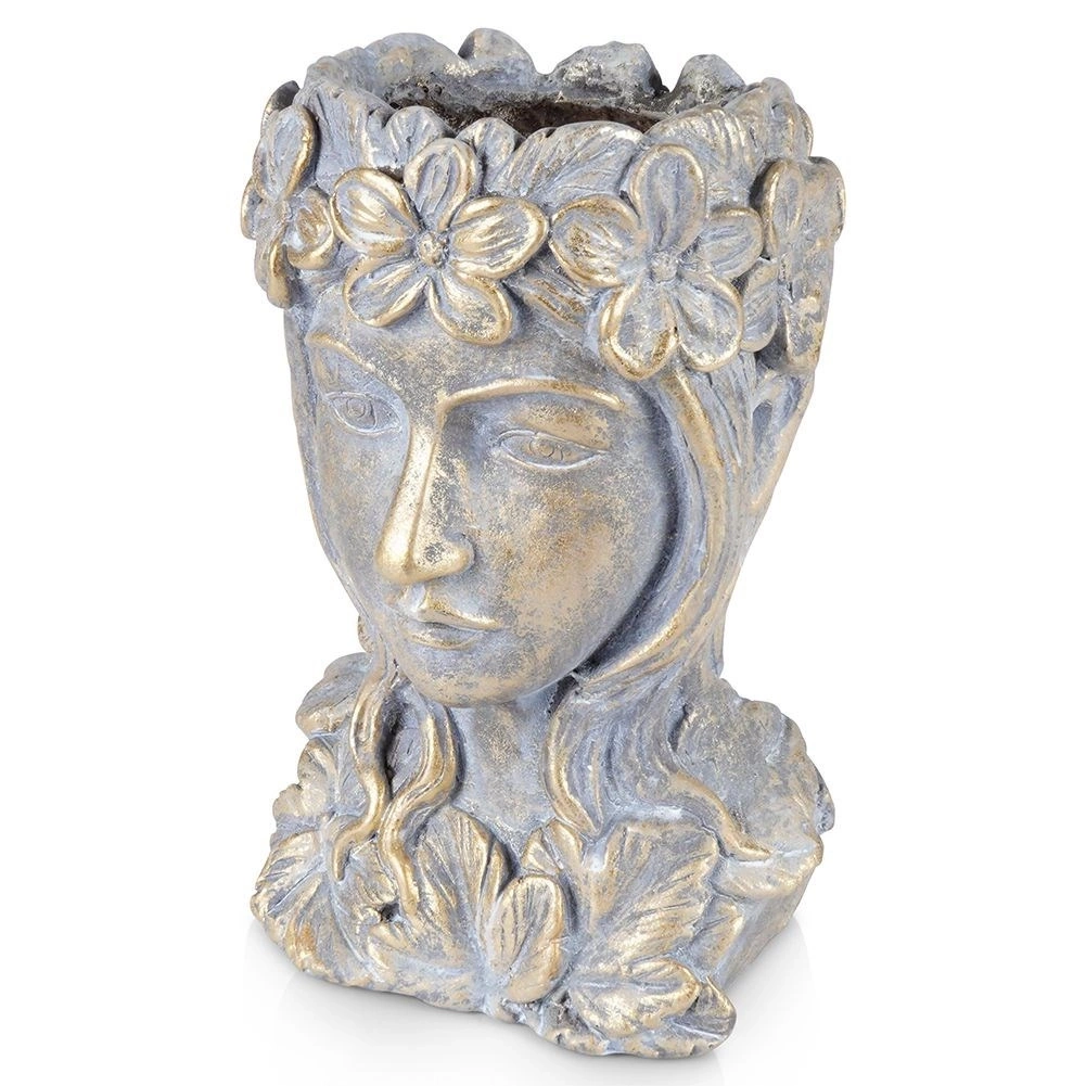 Oryginalna osłonka na doniczkę w kształcie żeńskiej głowy w stylu greckim. Dzięki osłonce możemy w efektowny sposób wyeksponować ulubione rośliny, kwiaty i zioła. Wyjątkowy wygląd doniczki nada charakteru każdemu wnętrzu i będzie modnym dodatkiem. Wysokiej jakości wykończenie zapewnia jej niezwykły efekt wizualny. Wyprodukowano zgodnie z europejskimi standardami.