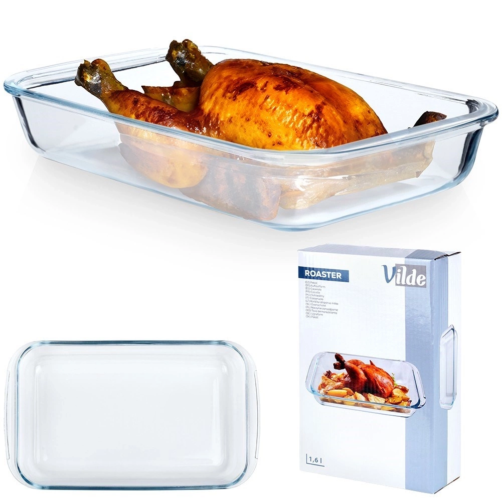 Żaroodporne naczynie w prostokątnym kształcie do zapiekania i pieczenia. Wygodne w użytkowaniu, dzięki praktycznym uchwytom. Forma jest idealna do przygotowania zapiekanych dań, a także możemy serwować w niej bezpośrednio potrawy. Powierzchnia naczynia jest gładka, co pozwoli na łatwe utrzymanie go w czystości. Podczas używania przestrzegać zasady powolnego ogrzewania i chłodzenia, nie dodawać zimnej ani gorącej wody. Nie umieszczać naczynia na bezpośrednim źródle ciepła. Oryginalny produkt marki Vilde. Wyprodukowano zgodnie z europejskimi standardami.