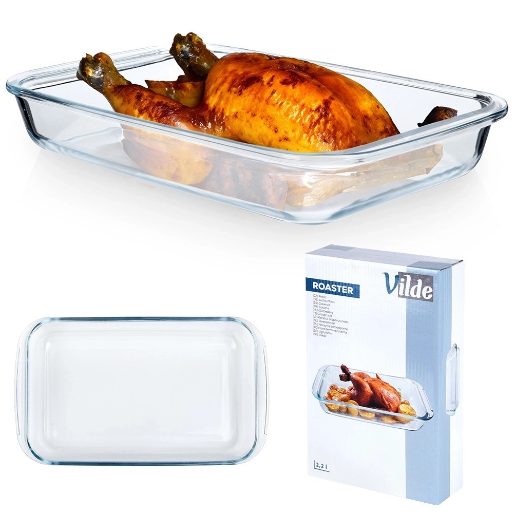 Żaroodporne naczynie w prostokątnym kształcie do zapiekania i pieczenia. Wygodne w użytkowaniu, dzięki praktycznym uchwytom. Forma jest idealna do przygotowania zapiekanych dań, a także możemy serwować w niej bezpośrednio potrawy. Powierzchnia naczynia jest gładka, co pozwoli na łatwe utrzymanie go w czystości. Podczas używania przestrzegać zasady powolnego ogrzewania i chłodzenia, nie dodawać zimnej ani gorącej wody. Nie umieszczać naczynia na bezpośrednim źródle ciepła. Oryginalny produkt marki Vilde. Wyprodukowano zgodnie z europejskimi standardami.