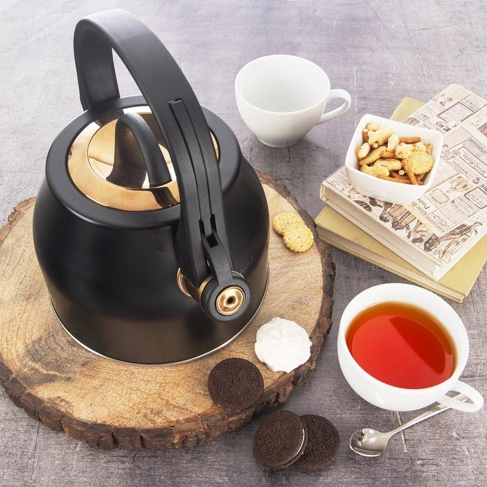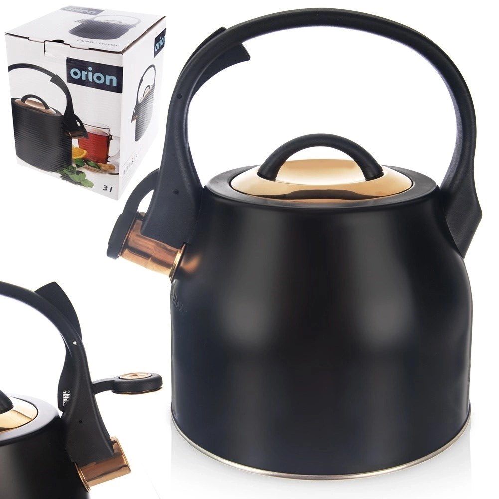 Czajnik z gwizdkiem stalowy czarny złoty 3 l