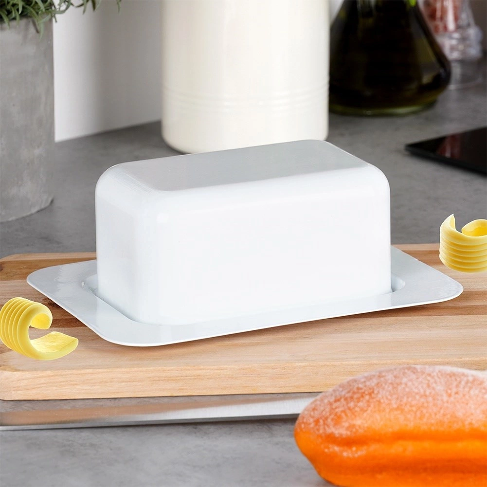 - Maselniczka wykonana w całości ze stali w kolorze białym. Idealna do przechowywania i serwowania masła. Posiada klasyczny kształt pasujący do każdej zastawy.