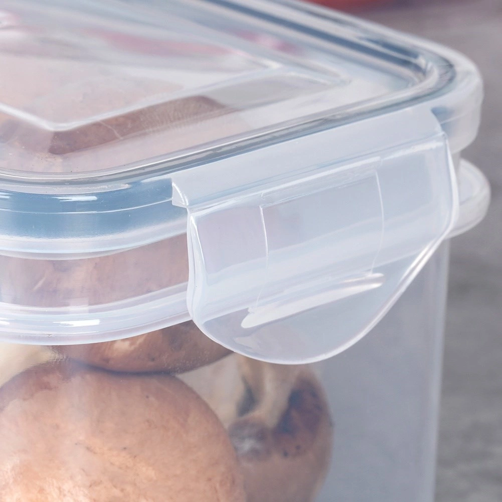 - Szczelne zamknięcie na cztery klipsy z uszczelką - Pokrywka w pojemnikach zamykana jest na cztery solidne klipsy. Pojemniki są szczelne, pokrywka posiada gumową uszczelkę w kolorze szarym. Odpowiednie zamknięcie pojemników zapewni świeżość przechowywanych lub transportowanych produktów.