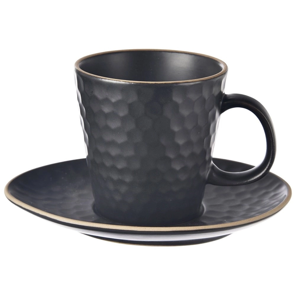 Filiżanka ze spodkiem ceramiczna czarna TEA TIME 235 ml