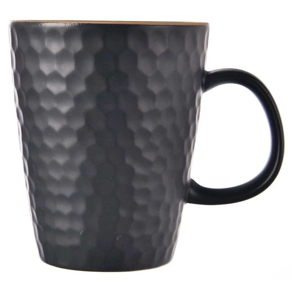 - Wykonany z kamionki - Wykonany z wysokiej jakości kamionki w kolorze czarnym. Zewnętrzny dekor kubka przypomina plaster miodu. Odpowiednio użytkowany posłuży długie lata.