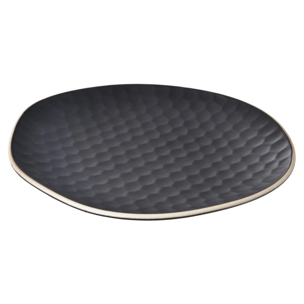 - Mały talerzyk do serwowania przekąsek słodkich lub słonych Wykonany z ceramiki w czarnym kolorze. Nadaje się do zmywarki i mikrofalówki.