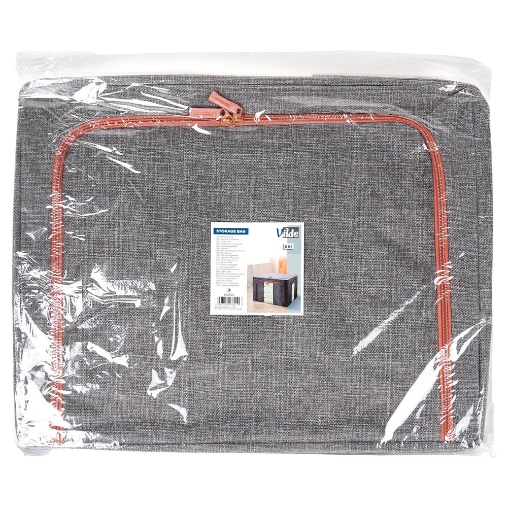 Przydatny pokrowiec na pościel. Wykonany z wytrzymałych materiałów. Sprawdzi się do przechowywania koców, poduszek, ale również ubrań i innych tekstyliów. Pokrowiec jest zamykany, więc ochroni przechowywane rzeczy przed zawilgoceniem oraz molami. Z jego pomocą możemy odpowiednio wygospodarować przestrzeń w szafie lub pod łóżkiem. Oryginalny produkt marki Vilde. Wyprodukowano zgodnie z europejskimi standardami.