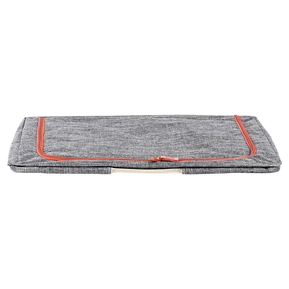 - Wygodne uchwyty - Pokrowiec wyposażony w dwa praktyczne uchwyty, które ułatwiają jego przenoszenie oraz wyciąganie z trudno dostępnych miejsc, takich jak przestrzeń pod łóżkiem czy górne półki w szafie.