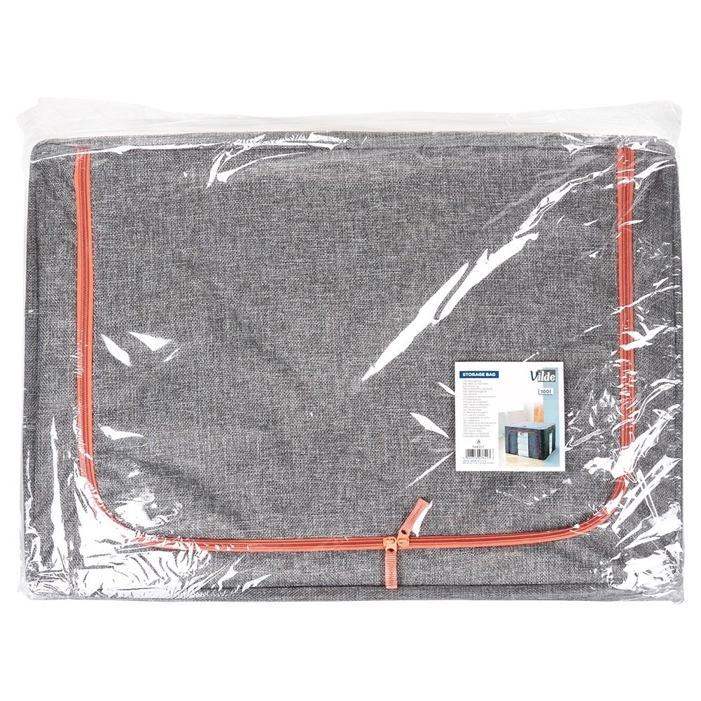 Przydatny pokrowiec na pościel. Wykonany z wytrzymałych materiałów. Sprawdzi się do przechowywania koców, poduszek, ale również ubrań i innych tekstyliów. Pokrowiec jest zamykany, więc ochroni przechowywane rzeczy przed zawilgoceniem oraz molami. Z jego pomocą możemy odpowiednio wygospodarować przestrzeń w szafie lub pod łóżkiem. Oryginalny produkt marki Vilde. Wyprodukowano zgodnie z europejskimi standardami.