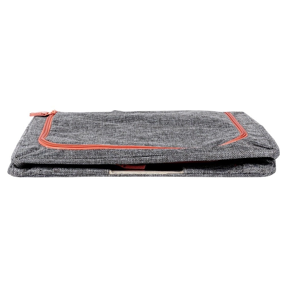 - Wysoka jakość materiału - Pokrowiec wykonany z wytrzymałej tkaniny poliestrowej w melanżowym, szarym kolorze. Zamek jest w kolorze łososiowym.